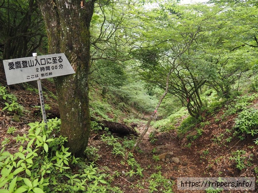 割石峠に到着しました。このまま下山しようか蓬莱山へ登ろうか迷います。蓬莱山へ行っても時間的にぎりぎり間に合いそうだったので、蓬莱山へ行くことにしました。