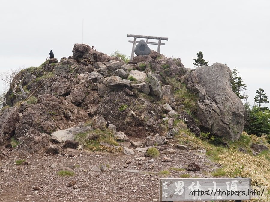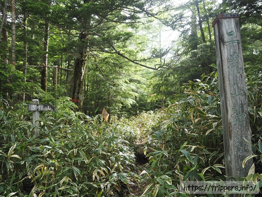 三角点に到着しました。最高地点ではないですが、標高2,486mある男体山に登頂しました。二荒山神社へ戻らず、そのまま先に進み、志津乗越へ下山をします。