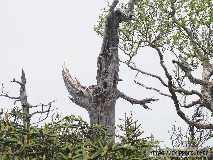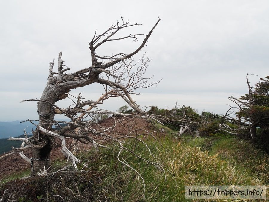 稜線は厳しい環境であることが、目の前の木が語っています。
