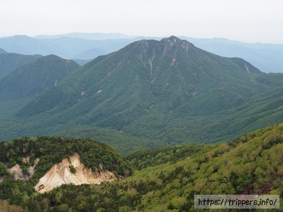日光白根山です。こちら側へ下山すると湯元温泉街に着きます。ユモトマムシグサは、この地名から名前が付けられていたり、ショウキランも自生していたり、名瀑である湯滝もあります。登山せずとも観光や湯治など楽しめます。