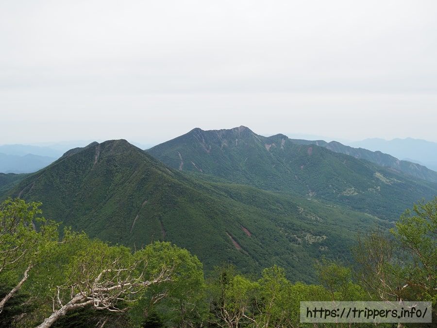 大真名子山と女峰山です。女峰山は日本百名山を選定した深田久弥が2度挑戦するも、山頂に立つことが出来なかった山です。もし登頂していたら、女峰山が日本百名山に選ばれて、代わりに男体山が外されていたかもしれません。