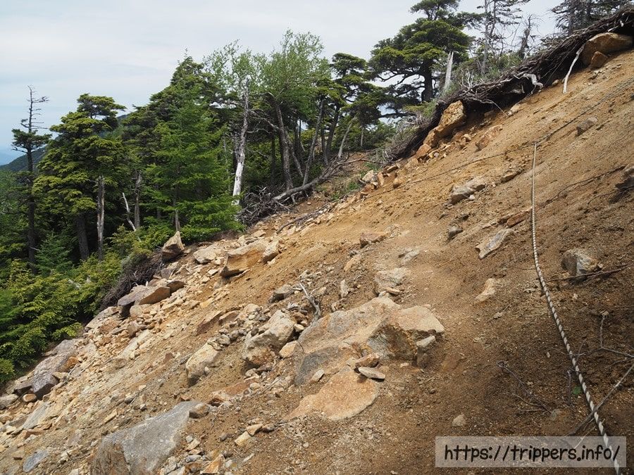 道は荒れていたりしますが、ロープが設置してあることが多いです。