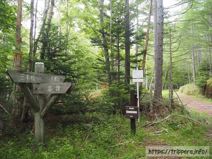 志津避難小屋に到着したので、中を覗いておきます。うん、かび臭いですね。本当はここに宿泊して逆ルートで登ろうかとも考えていました。避難のためだけに使いたい感じの小屋でした。