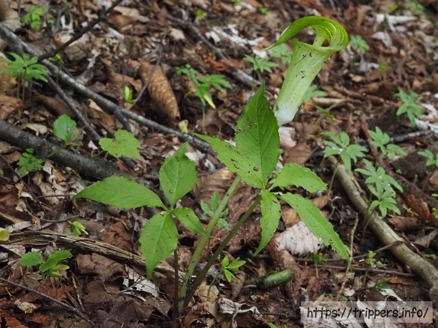 ユモトマムシグサが咲き残っていました。ここは湯元に近い場所なので、テンナンショウの多くはユモトマムシグサかもしれません。