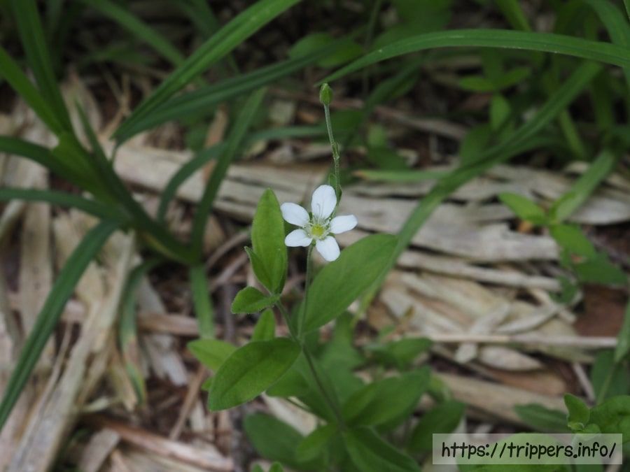 ツマトリソウです。白い花びらの端に赤色が入ることがあり、鎧の威色目の「褄取り(つまどり)」に似ていることが由来です。そのような個体は今回見かけることはありませんでした。