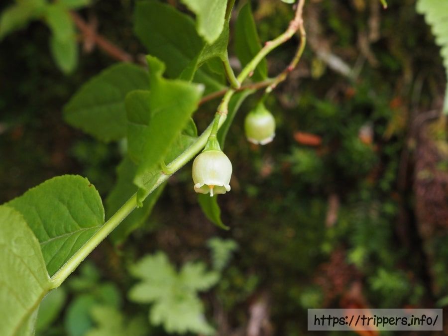コケモモは、実を見たことはあっても花は初めてかもしれません。赤い実はジャムや果実酒として利用できます。