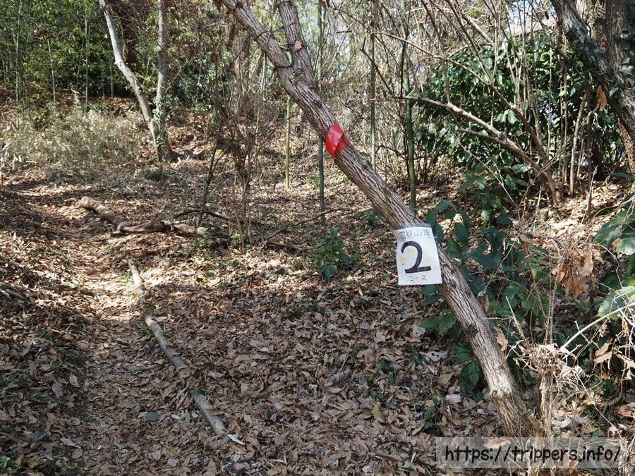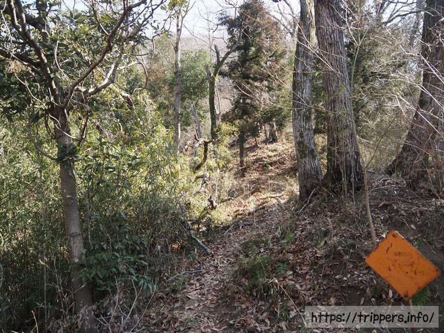 道迷いしないように赤テープ等あったりします。そして、このルートだけマダニが多いです。冬で葉が生い茂っていなくても、マダニはズボンに何匹もくっつきます。マダニに噛まれると「日本紅斑熱」や「重症熱傷血小板減少症候群(SFTS)」に感染する可能性があり、致死率は最大30%に及ぶ危険な感染症になることもあります。