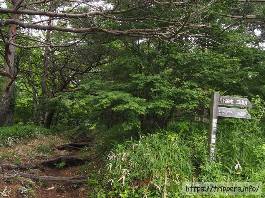 すれ違ったり、追い抜かしていく登山者は多くないです。ここは八ヶ岳でも、赤岳のような絶大な人気はないかもしれません。ですが観音平駐車場は満車で、車道に多くの車が停車してありました。