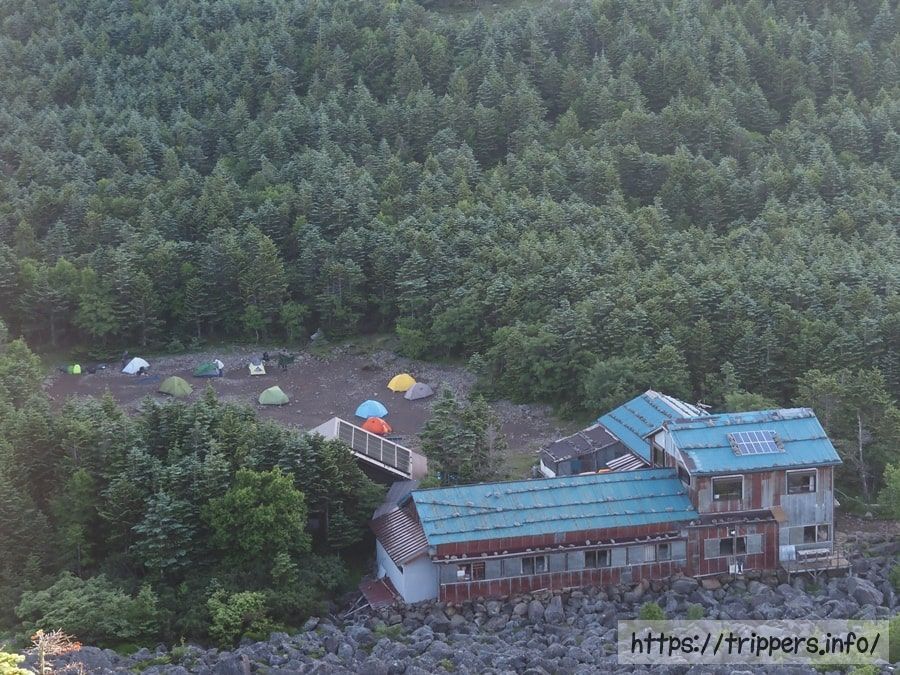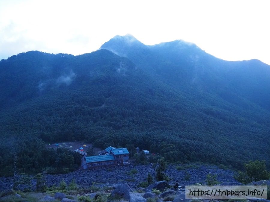 青年小屋とテント場です。もともとテントの数は少なかったですが、既にテントを撤収して権現岳へ向かった人もいるようです。