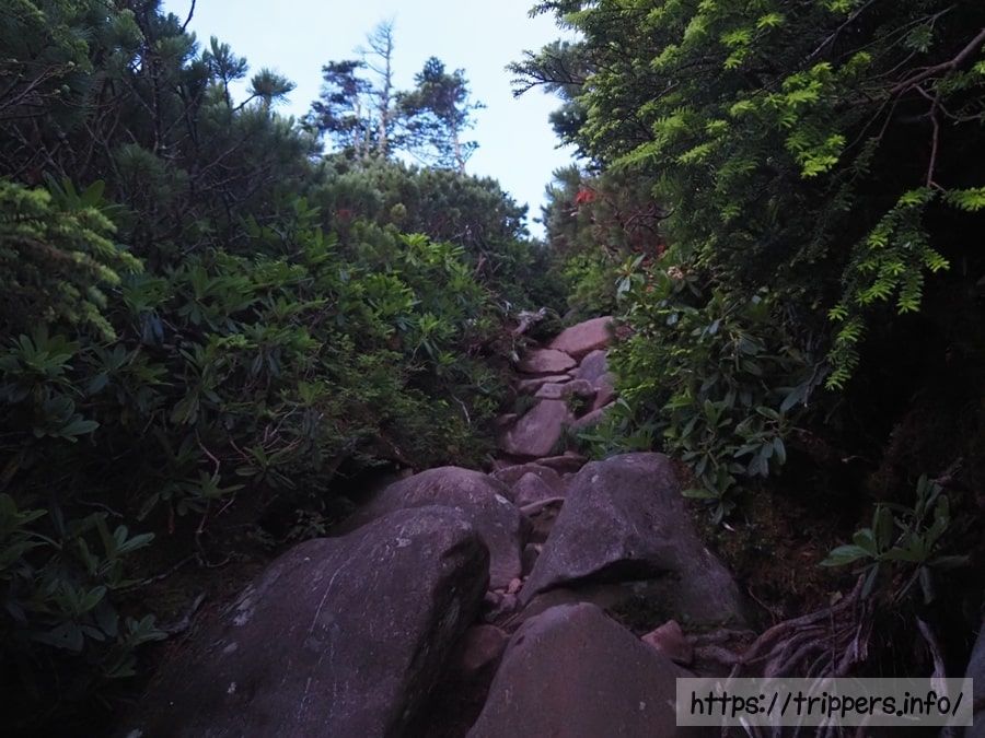 青年小屋から編笠山までの登山道のほとんどが岩場です。降りてくる登山者1名とだけすれ違いました。