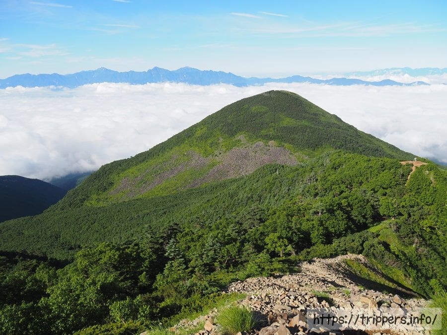 昨日登った西岳が見えてきました。