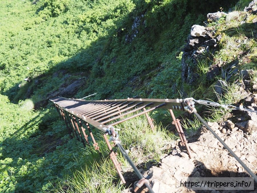 キレットへの入り口にある梯子に立ち寄ってみました。源治梯子と呼ばれ61段あり、長さは20m程です。