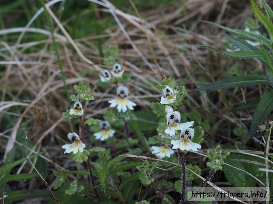 コバノコゴメグサです。高山にあるためミヤマコゴメグサと間違えられやすいですが、茎や萼に腺毛があるのがコバノコゴメグサで、ないのがミヤマコゴメグサです。