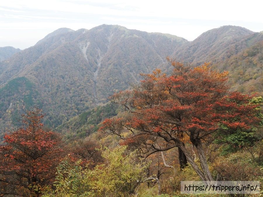 それに比べて、表尾根の紅葉は良かったです。多分、三ノ塔辺りは遠目から見て紅葉していなさそうな感じだったので、三ノ塔から見る表尾根の紅葉はイマイチだと思います。