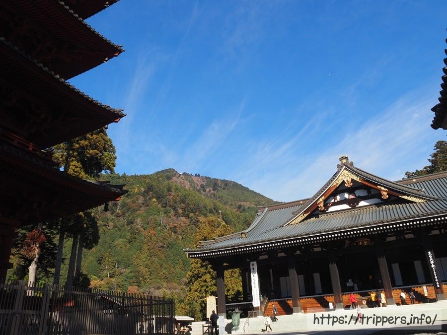 今回登山する山は身延山です。山梨百名山に選ばれています。紅葉が見頃な時期になり、山頂や久遠寺では、多くの参拝者や観光客、登山者を見かけますが、他の観光地と比べると人混みとは無縁で、静かに過ごせます。