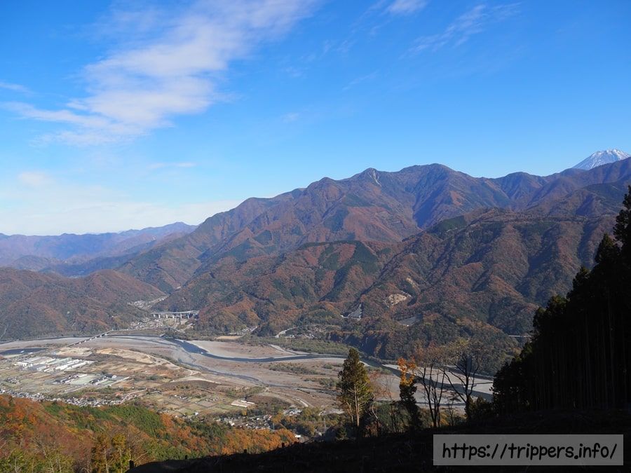 南側展望台まで来ると、人を見かけるようになってきました。山頂まではあと少しです。毛無山を含む天子山地が富士山の姿を隠しているため、富士山の存在を十分に感じられない景色でした。