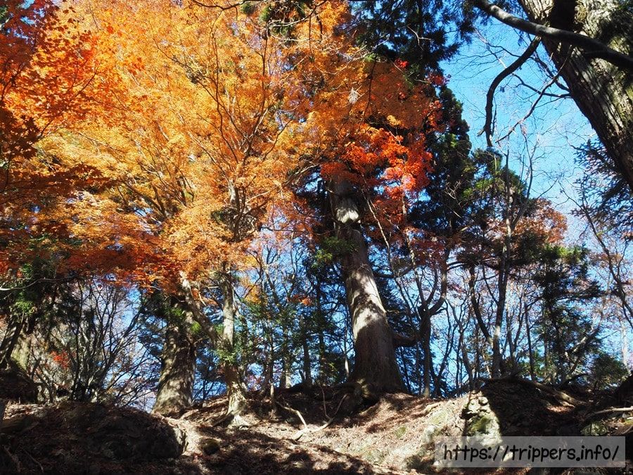 また身延町はヤマビルが多い場所ですが、気温が寒くなり、雨も降っていないため、道のど真ん中を歩いている限り、吸血被害はありません。登山道は参道でもあるため、良く整備されています。落ち葉が多い季節なので、気温が高くなると落ち葉からヤマビルが出現してくることもあるかもしれません。念のためにディート入り虫よけスプレーを持参しています。ヤマビルに吹きかければ退治出来ます。