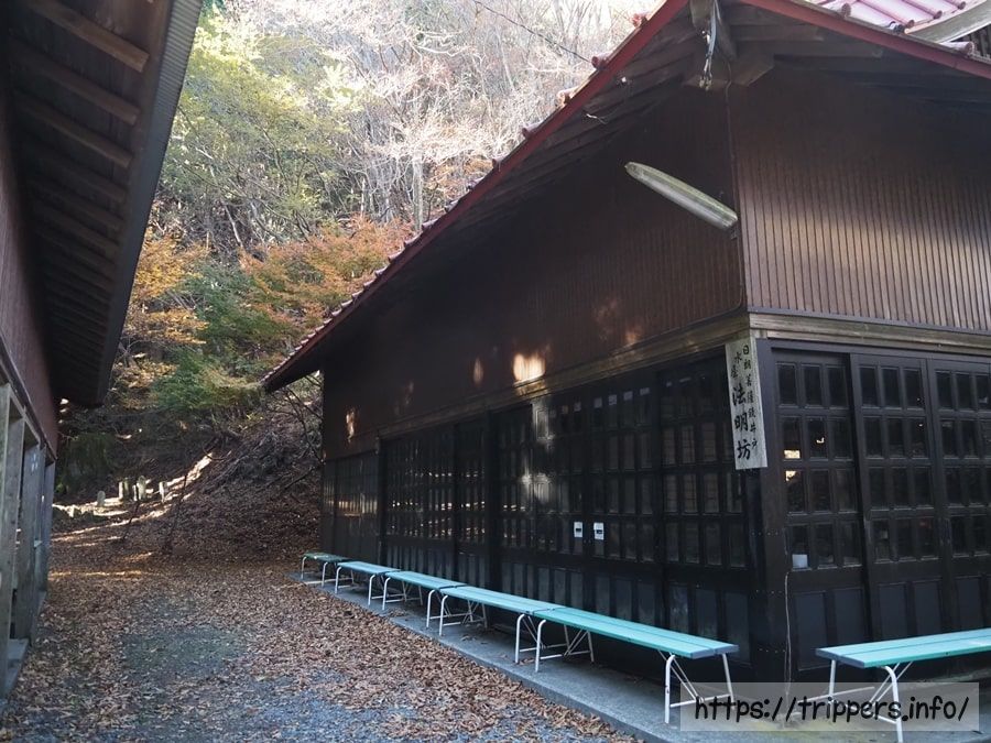 法明坊と呼ばれる無人の休憩所です。休んでいる人は誰もいません。