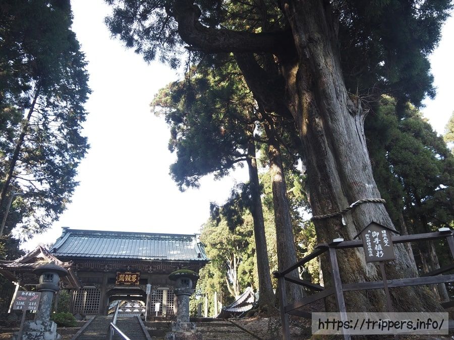仁王門です。近くには、日蓮聖人のお手植えと伝えられる老杉がありました。