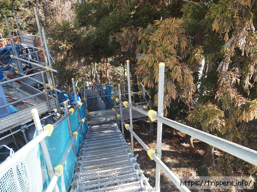 高松山の山頂近くになると、長い階段が出現します。ここで一気に標高を上げて山頂に到着する形になります。