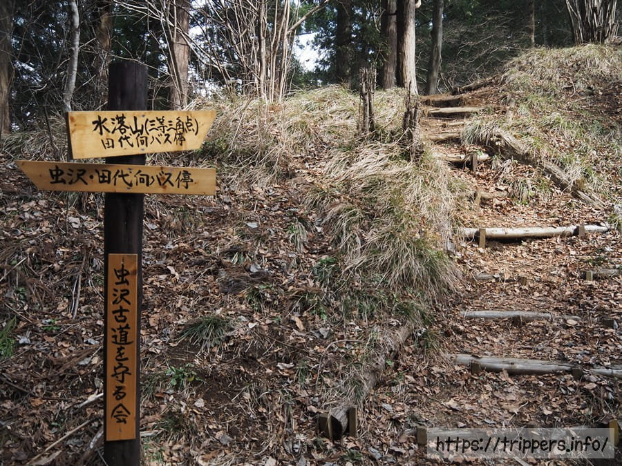 この道は虫沢古道(はなじょろ道)と呼ばれています。昔、人々が行き交った生活道の「虫沢古道」であり、花嫁が通ったとされる「はなじょろ道」です。戦前までは多くの人で賑わっていたようですが、その頃はまだヤマビルの巣窟ではなかったのか気になります。
