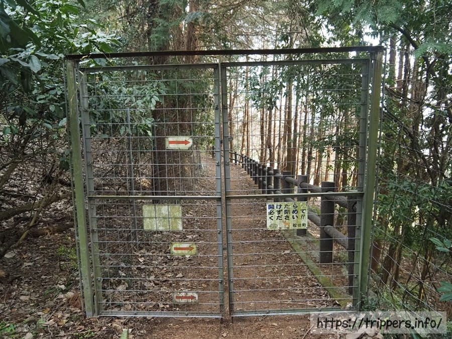 山頂側からの景色です。松田山や最明寺史跡公園へのルートには繋がっていないため、尺里峠まで引き返します。