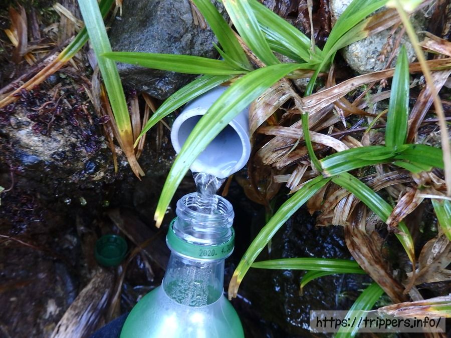 水場がある登山をする場合、水を最低限しか持っていきません。登山開始時に水場がある場合はお茶が入ったペットボトル1本です。水場が途中でなくなる場合は、空のペットボトルを持参んします。最後の水場、もしくはその1つ手前の水場で空のペットボトルに水を詰めます。最後の1つ手前の水場で給水する理由は、最後の水場を何らかの理由で通り過ぎる可能性を考慮してです。初めての山に訪れた時は、水場が分からないこともあるかもしれません。
