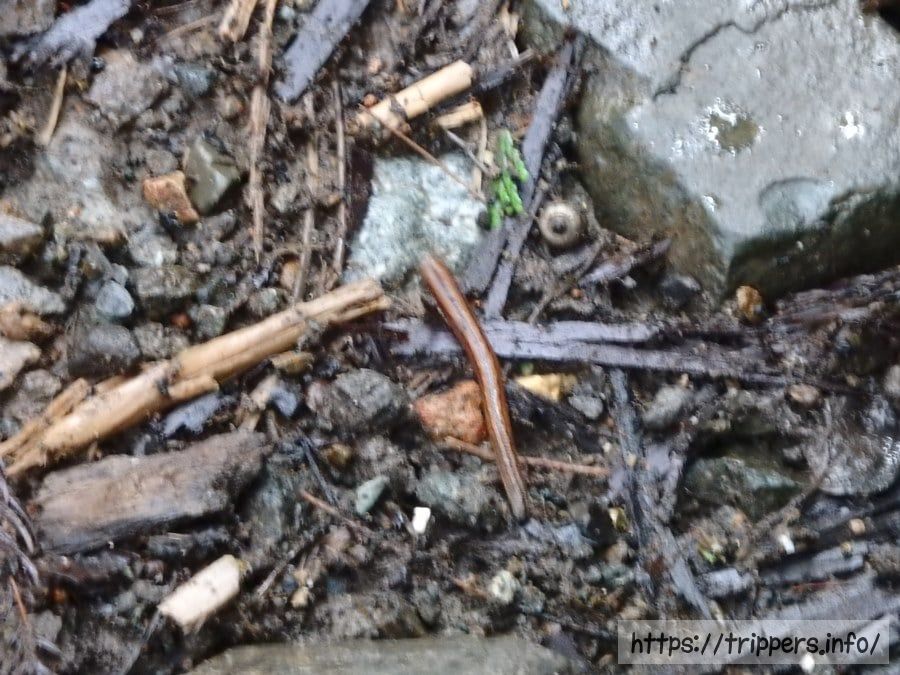 それでもヤマビルが多い地域では被害に遭うこともあります。定期的に立ち止まり、足元やズボンにヤマビルがいないかチェックするだけで、ヤマビルに取りつかれても吸血被害はかなりなくなります。ヤマビルが足元から登ってくる移動速度はかなり速いです。靴だけでなく膝上までヤマビルがいないか、定期的に確認が必要です。ヤマビルの巣窟に足を入れてしまった場合は、数歩毎にヤマビルがくっついてきます。赤ちゃんヒルは米粒より小さく、動いている姿しか視認できません。十分なチェックが必要です。定期的な足元チェックは忘れがちだし、ヤマビルに怯えたくない人には究極の対策があります。それは、濃度の濃い塩水に浸した靴下を輪切りにし、輪切りにしたものを長靴のアッパー部分(足のすね当たりの位置)に巻くことです。長靴は昔から玄人登山者やボッカなどに愛用されており、塩による靴のダメージも最小限です。そしてヤマビルは塩だらけの靴下から上によじ登れないため、吸血されることは皆無です。