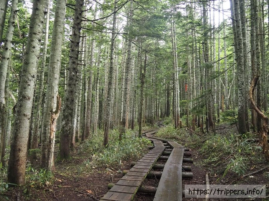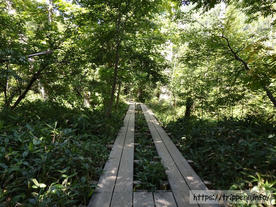 対向者とかち合いそうな時は、心が寛容でゆとりがある自分から木道を変更するのが良いように思います。ただし、木道が濡れていると木道変更時に滑って怪我をすることもあります。同じ方向へ前を行く人がいたら、その人と同じ木道を歩くのがおすすめです。