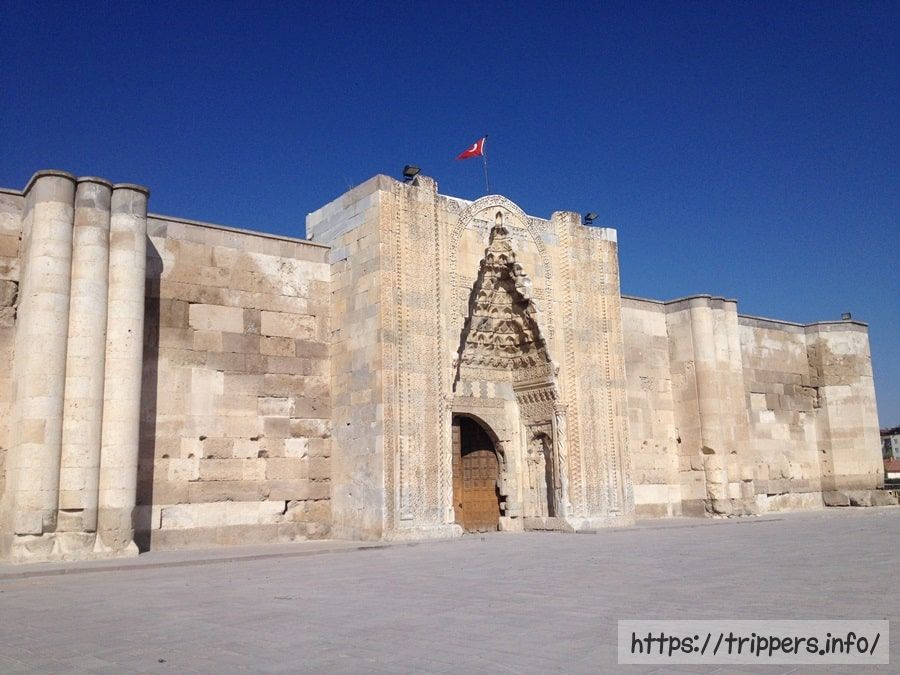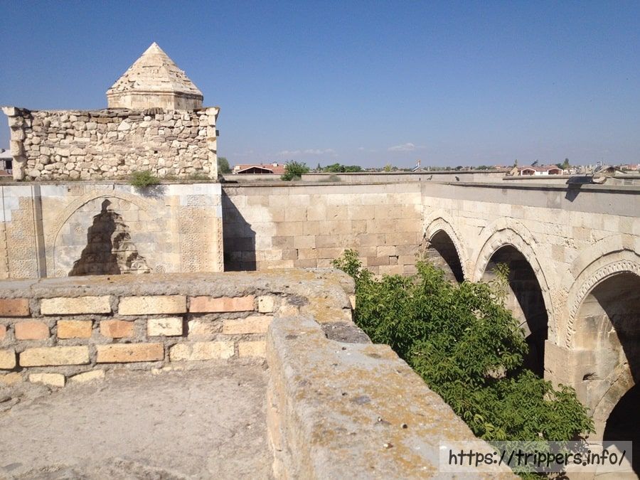 スルタンハンとは、13世紀に建てられた、東西貿易を行った商人や有力者の宿泊施設です。かつてのシルクロードに当時の建物がそのままの形で残っています。要塞のように高い壁は盗賊などからの襲撃に備えるためにあり、1つしかない入口の扉を閉める事で安心して休む事ができます。隊商のための取り引きや宿泊施設であるキャラバンサライはトルコに100程ありますが、そのほとんどが崩壊しており、数少ない見学できる建物の1つです。サライには宮殿の意味があります。アクサライとコンヤを結ぶ道の途中にあります。