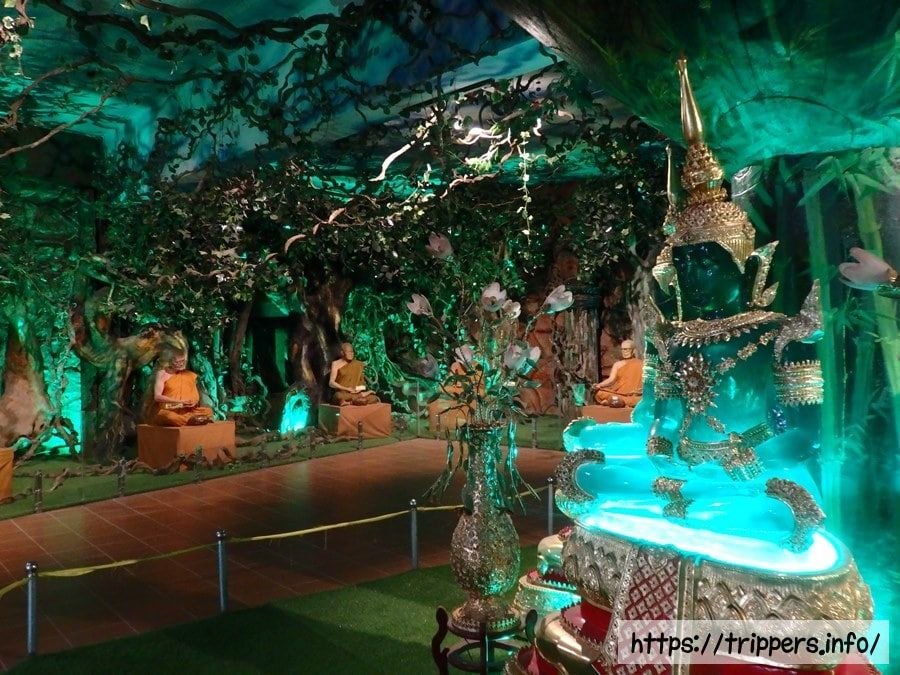 チャイマット駅にはチャイマット村があり、複数の寺院が集合したリンフオック寺が有名です。寺院の装飾だけでなく、ムギワラギクの花で作られた巨大な観世音菩薩像や仏像や地獄等の展示物があります。