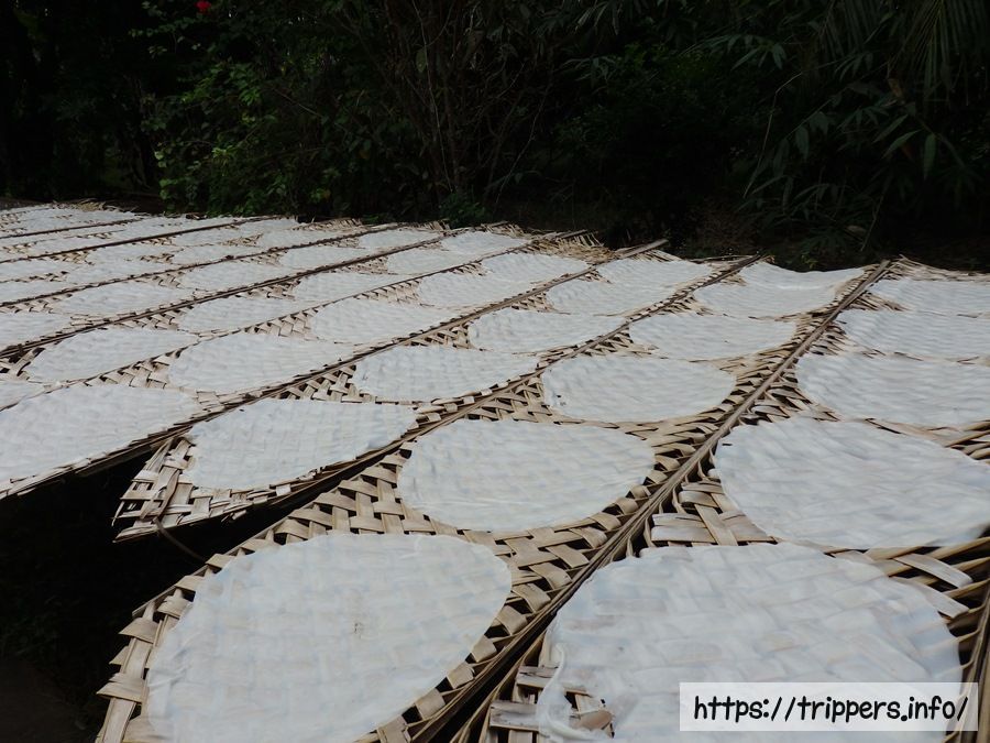 ライスペーパーが天日干しされています。