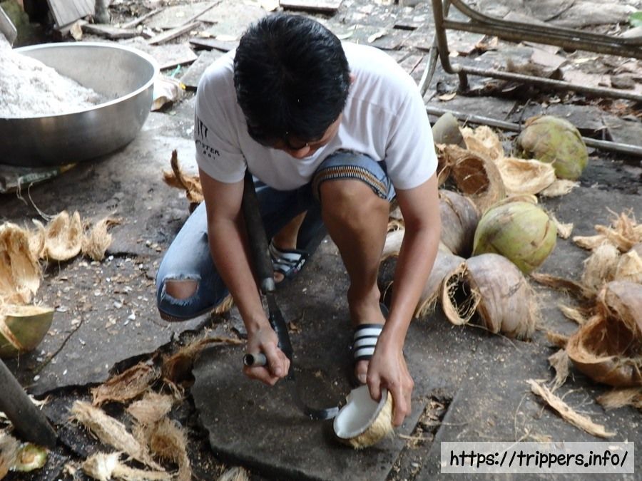 最後に向かった島ではココナッツキャンディーの製造現場です。手作業もありますが、自動化がある程度進んでいるようです。