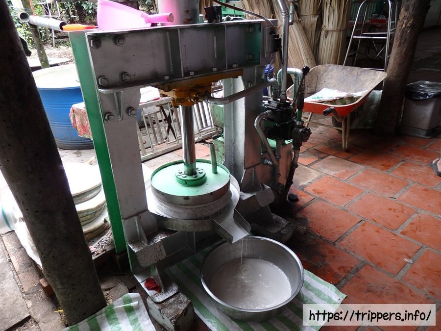 南国のフルーツが生える島内を進むとライスペーパー工場に到着します。最初の島ではライスペーパーをどうやって生産しているかを見学します。