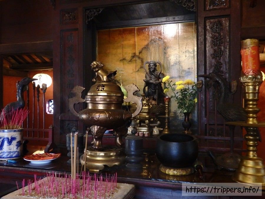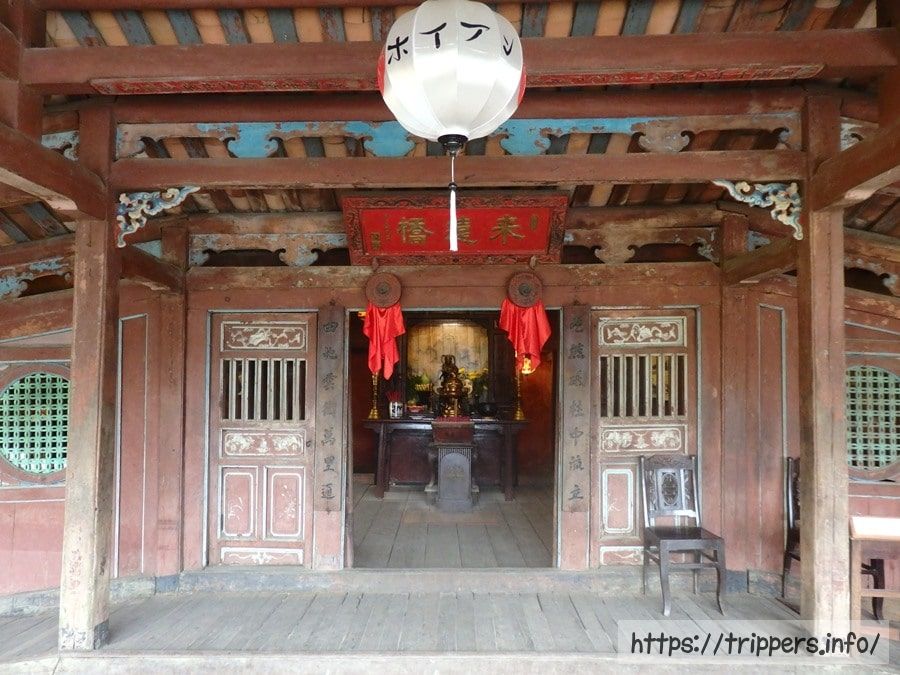 日本橋は日本人商人が資金を出し合い日本人によって建てられましたが、その時はカウ寺はありませんでした。その後、中国人やベトナム人により橋が修築され、鎮武北帝を祀る祠が建てられました。