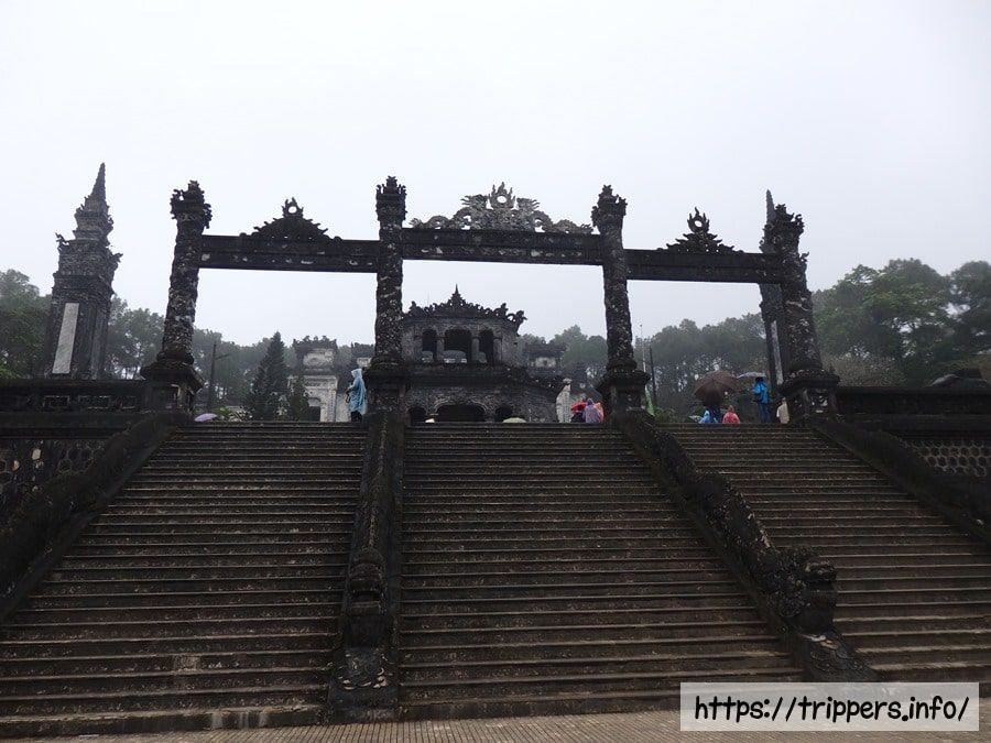 カイディン帝陵(カイディン帝廟)とは、啓定帝とも呼ばれる第12代皇帝カイディン帝(在位1916~1925)の陵墓です。フランスによって擁立され皇帝になったカイディン帝はフランスを訪問した際に見た大型建造物の影響を受け、カイディン帝陵はバロック様式になっています。