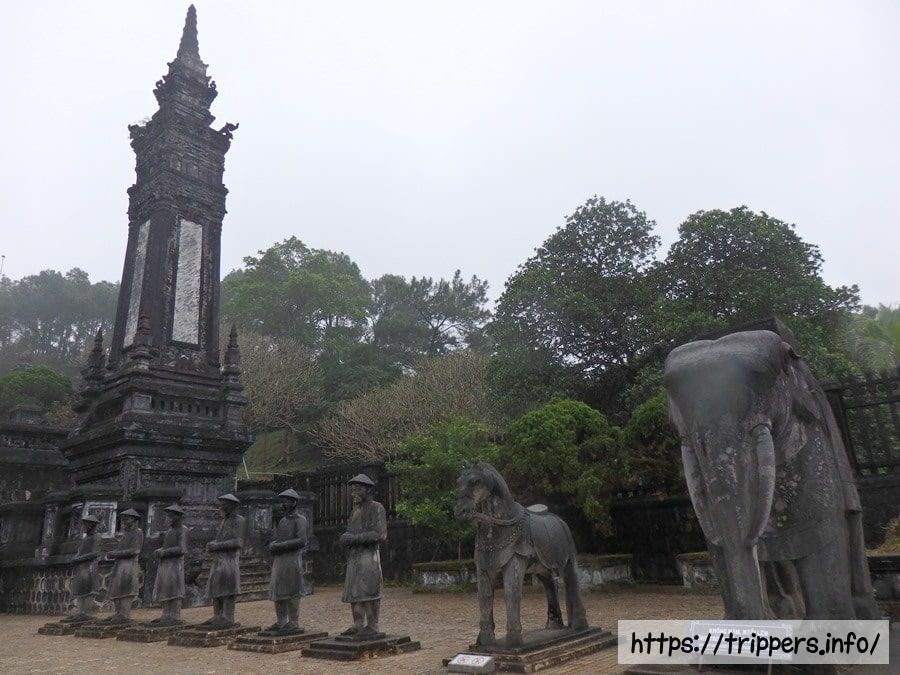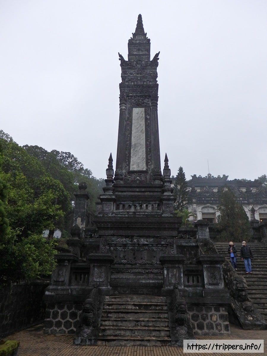 碑亭カイディン帝の功績が書かれた碑石が置かれている碑亭の両脇には象や役人の石像が立ち並び、帝陵を守っています。またオベリスク(記念碑)がそびえ立っています。カイディン帝はこの帝陵を建築する費用のために税金を20%アップしたため、国民の反感を買いました。