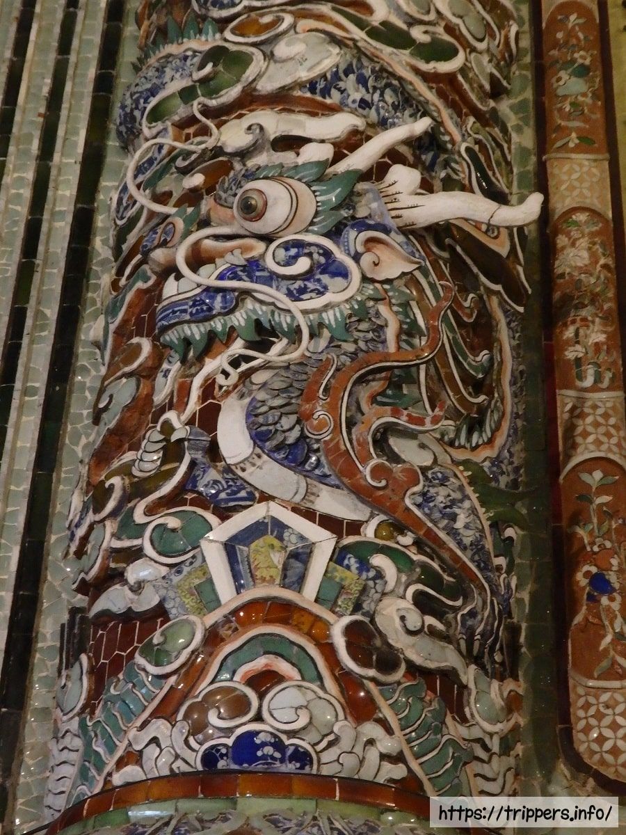 啓成殿の中に礼拝堂と墓所がありカイディン帝の遺体が安置されています。内部の天井には九龍が描かれ、壁面はすべて華々しく彩られたモザイク装飾が施されています。