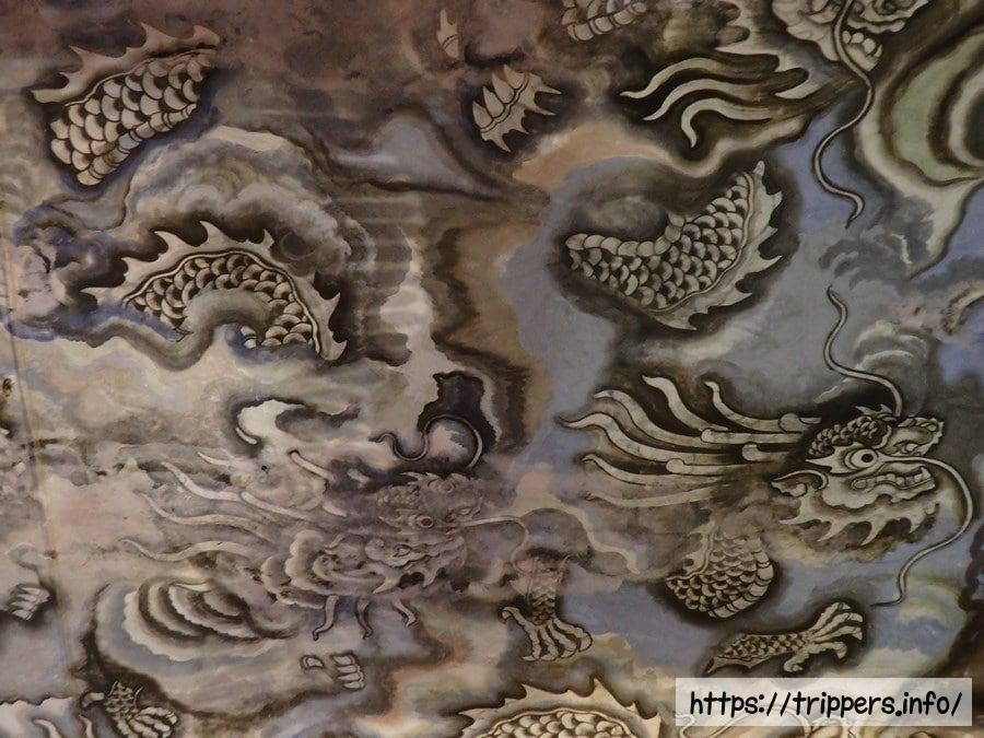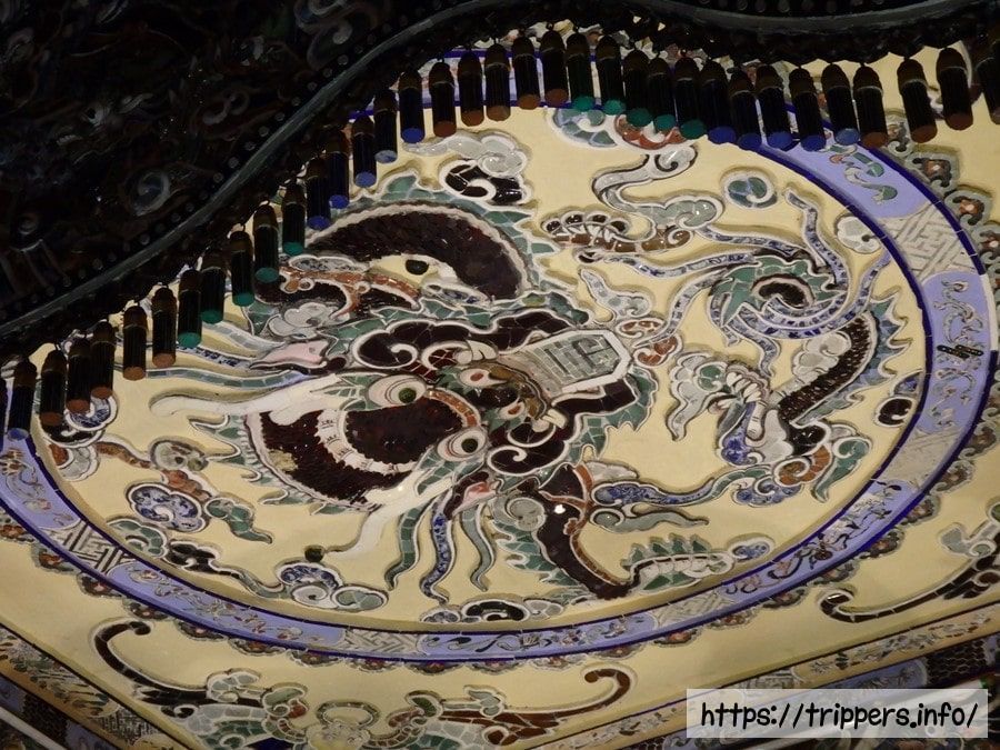 天井に描かれた九龍啓成殿の中に礼拝堂は豪華ですが、その奥にある墓所は更に豪華絢爛です。
