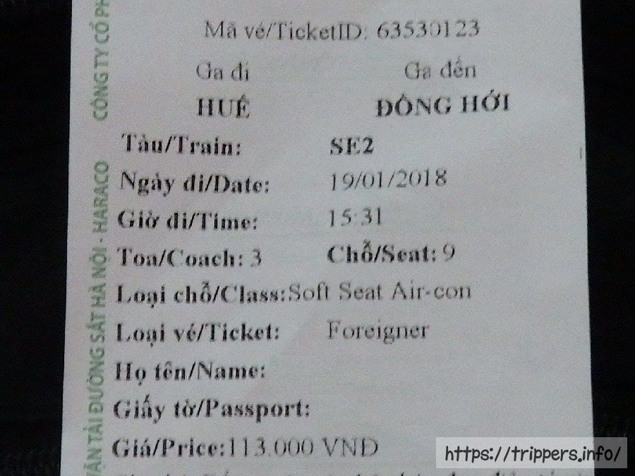 フエからドンホイで113000VND