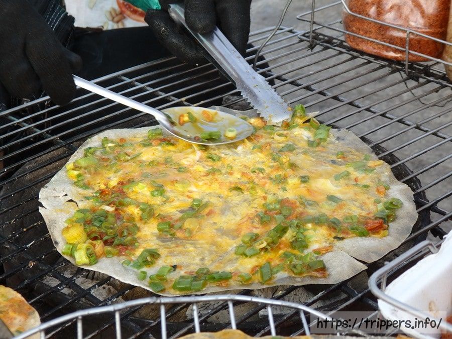 ライスペーパーの上に卵やネギ、ソーセージ等を載せ、チリソースをかけて炭火焼きしたスナックです。ダラットの街中で露店をよく見かけますが、ホーチミンやホイアン等でも売っており、お店ごとに具材や味が違ったりします。