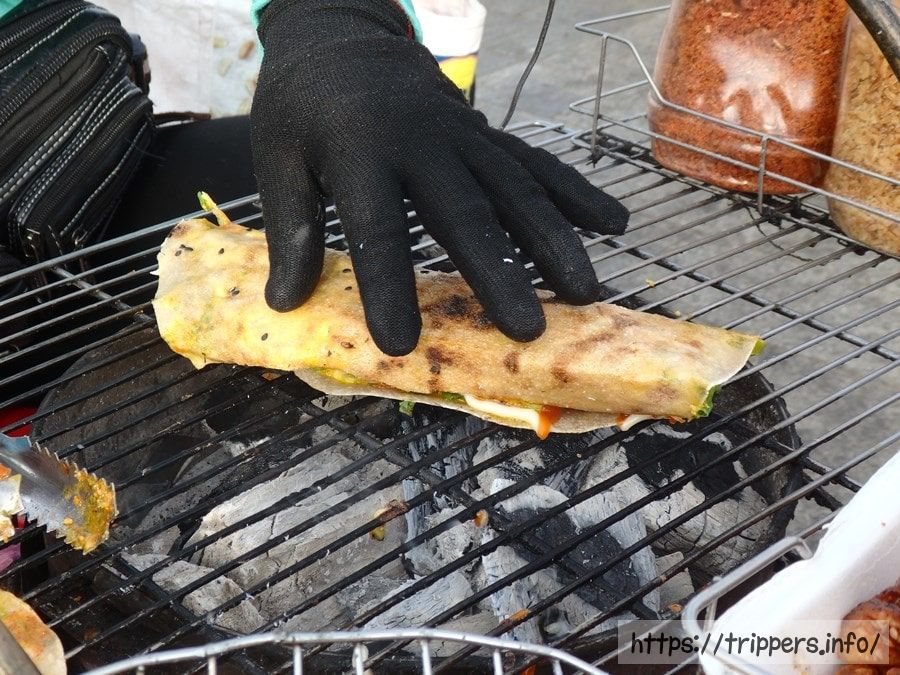 家でも簡単に作れます。フライパンで作ったことがあるのですが、ライスペーパーの癖になるパリパリ感はフライパンやオーブントースターではなく、炭火焼きならではだと思います。またもやしを具材に入れて、二つ折りにするだけで、バインセオのような料理に変身します。