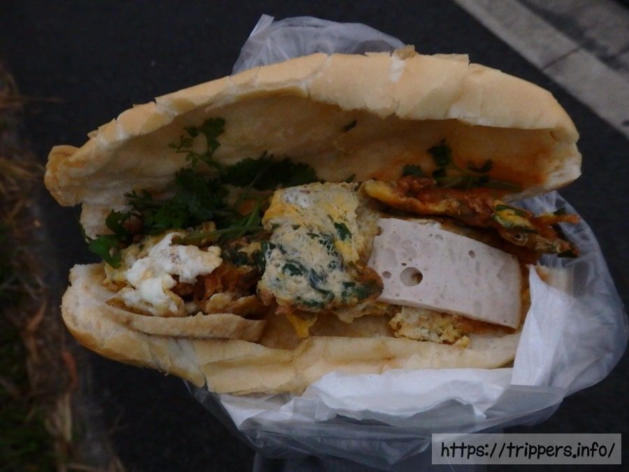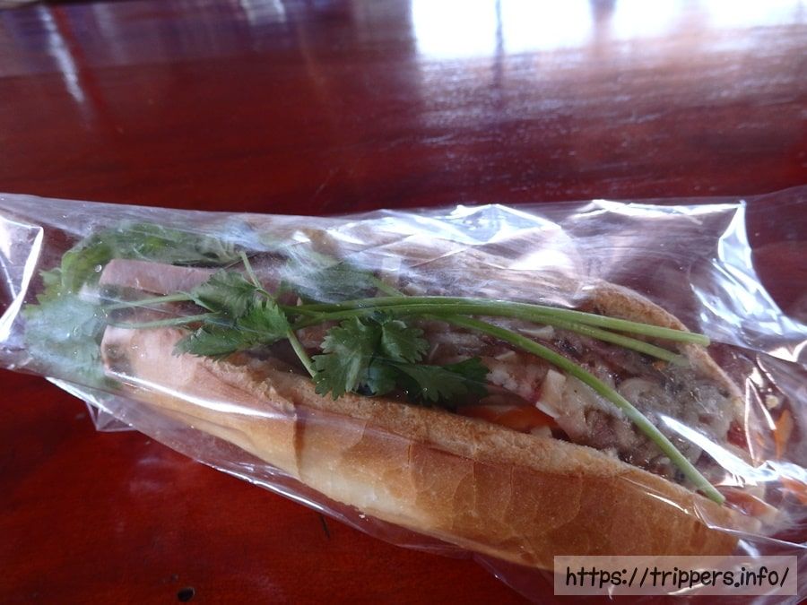 バインミーの良さは、美味しさだけでなく、手軽さです。バスで長距離移動する時、ちょっとしたバスの停車時間で注文でき、車内で食べられます。ツアーの集合時間が早くて、朝食をホテルで食べられない時、道端で購入したり、旅行者はお世話になりやすい料理です。