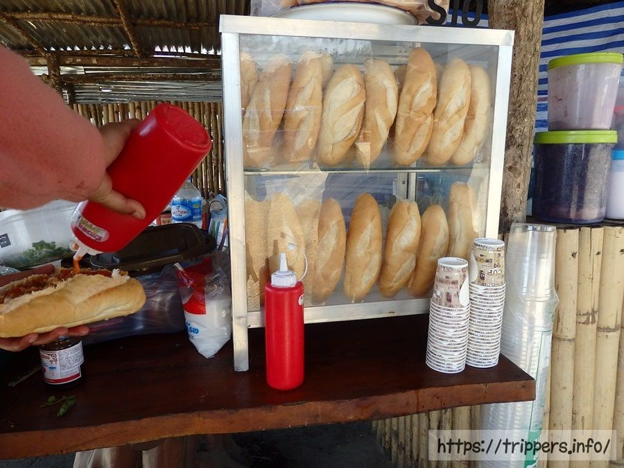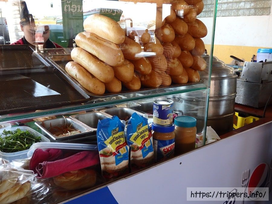 ラオスでカオ・チー・パーテを見かけたのは、長距離バス移動時の一時休憩場所です。ラオスではフランスに関係なくベトナム料理も一部浸透しています。