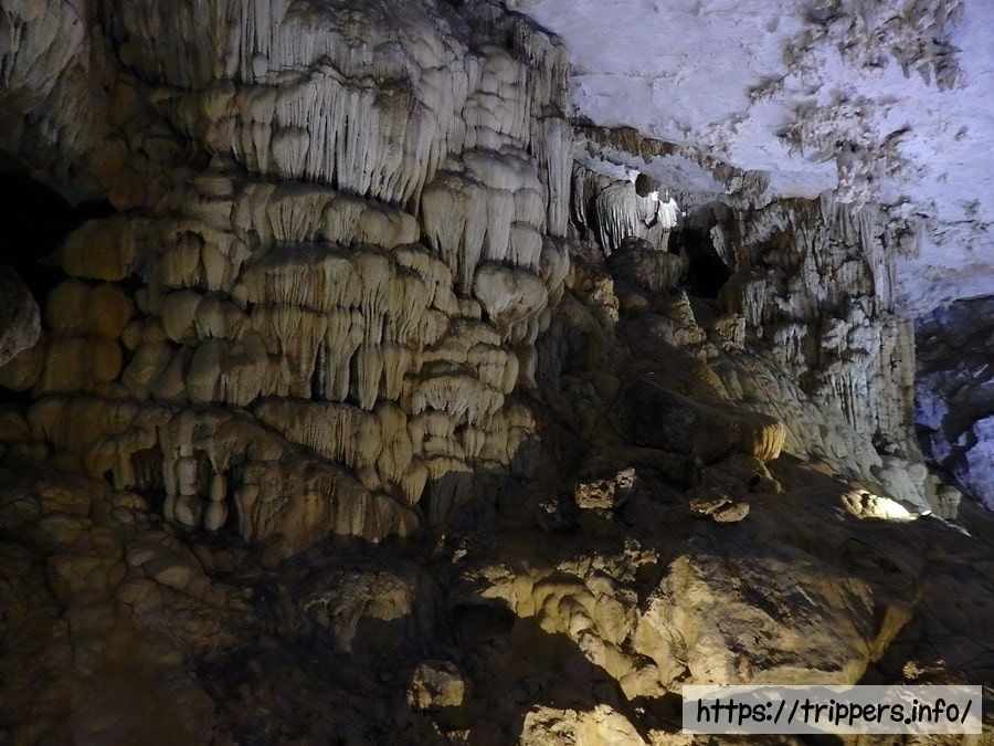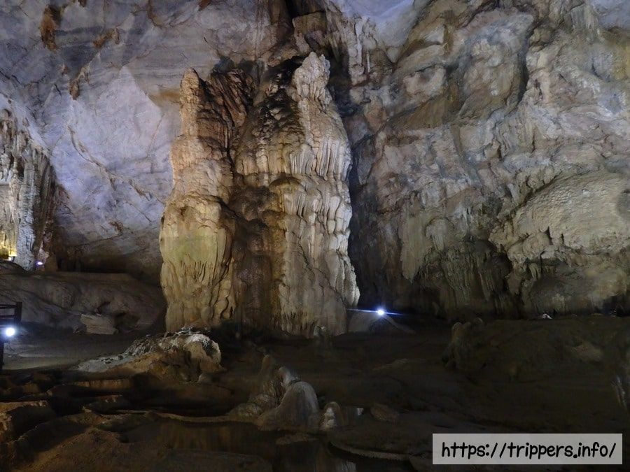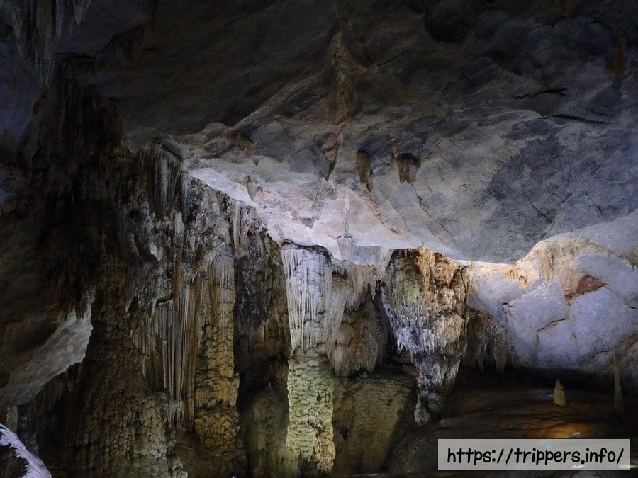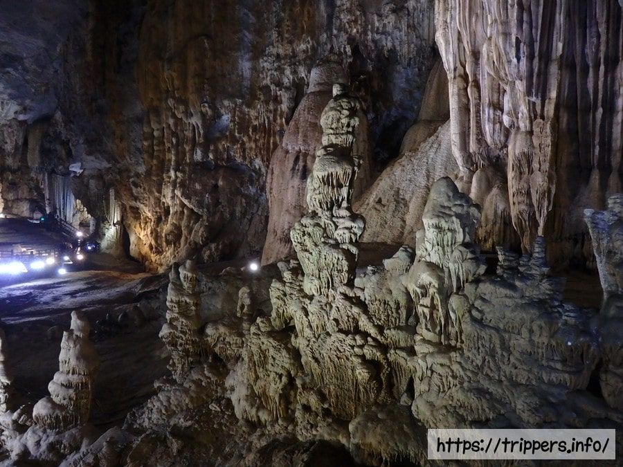パラダイスケイブとは、ティエンソン洞窟と呼ばれ、ティエンソン(thiên đuong)はベトナム語でパラダイスと言う意味で、天国の洞窟とも呼ばれます。大小約300の鍾乳洞があり2003年に世界遺産になったフォンニャ=ケバン国立公園の中にある鍾乳洞です。洞窟の全長は31kmもあり、とても巨大です。同じ公園内にある全長約8kmのフォンニャ洞窟より長いです。一般に公開されているのは1kmで、遊歩道の上を歩いて観光します。多様な形をした石筍や鍾乳石が多く、広大な空間が広がっています。